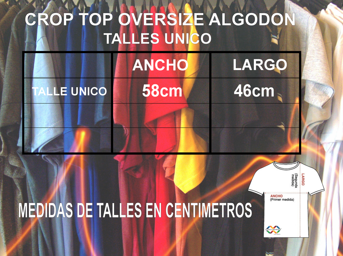 Crop Top Oversize de algodon Talle Unico con diseño estampado en impresion DTF