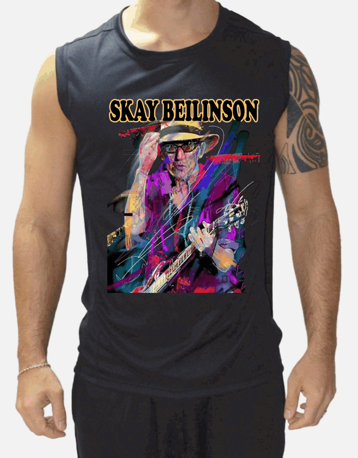 Remera de algodon sin mangas color negra Talle 4 o xl con diseño estampado en impresion DTF de SKAY BELLINSON
