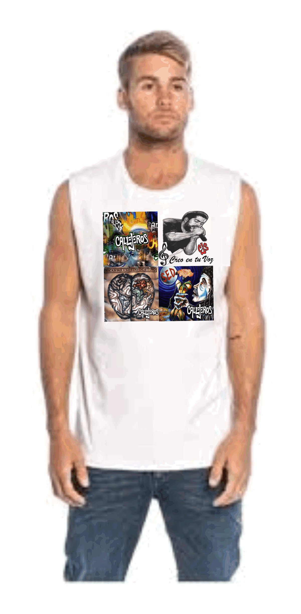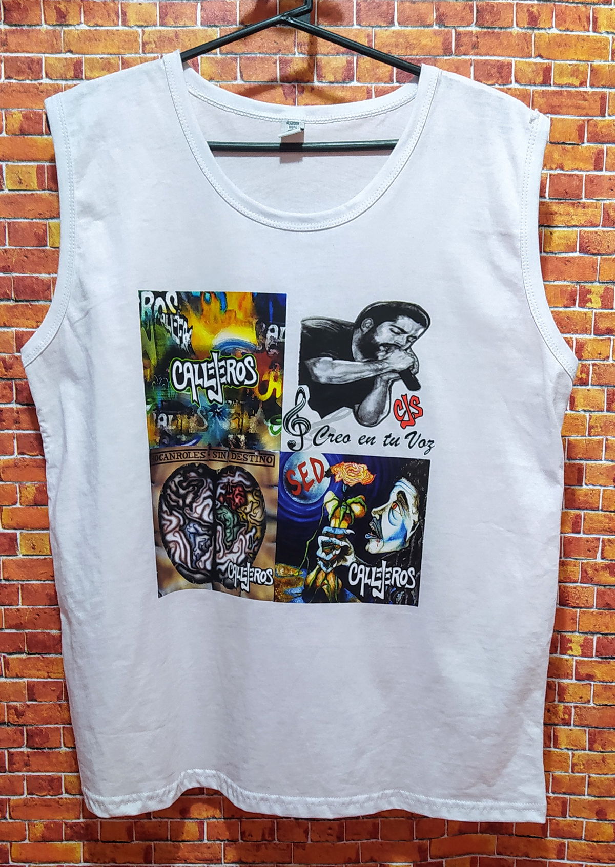 Remera de algodon sin mangas color blanca Talle L con diseño estampado en impresion DTF