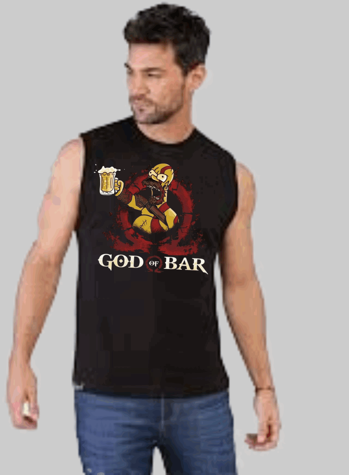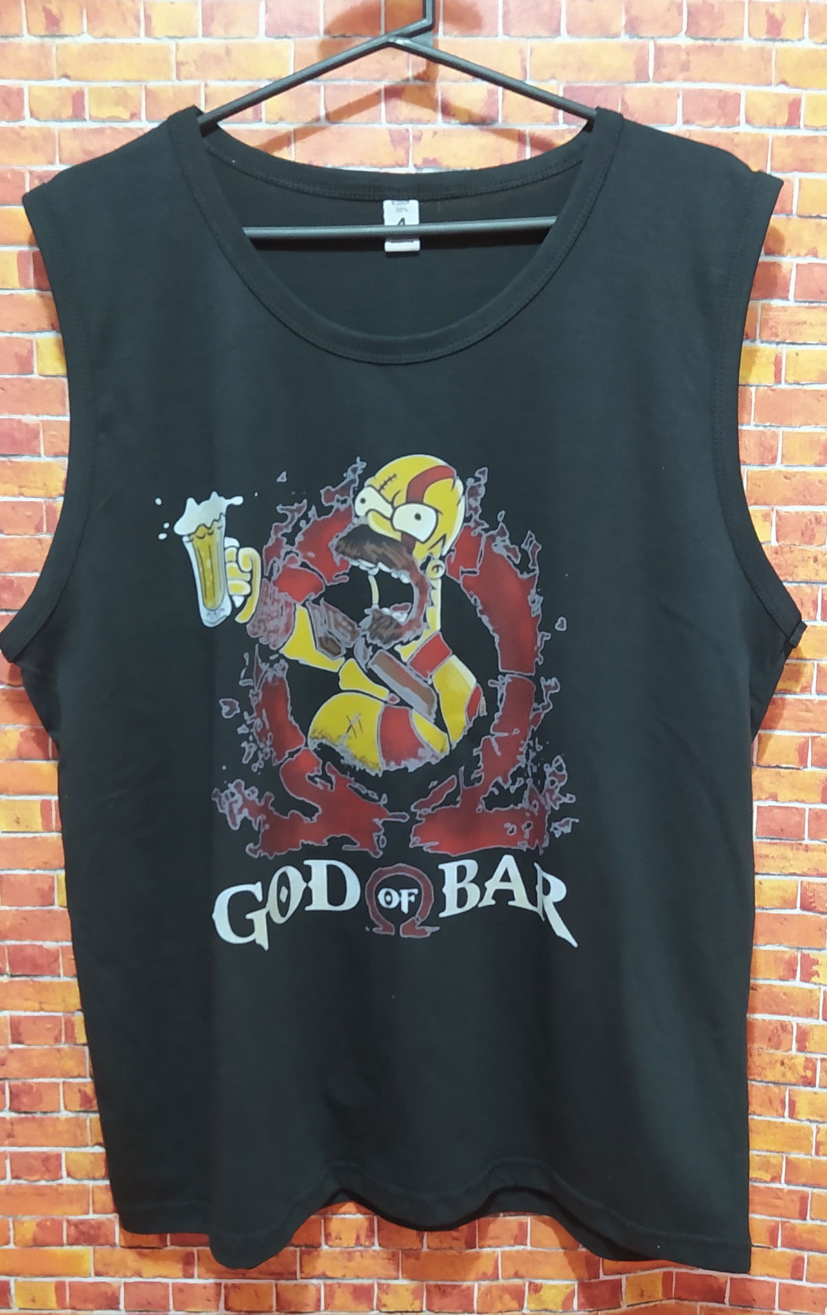 Remera algodon sin mangas color negra Talle xl con diseño estampado en impresion DTF de HOMERO SIMPSOM