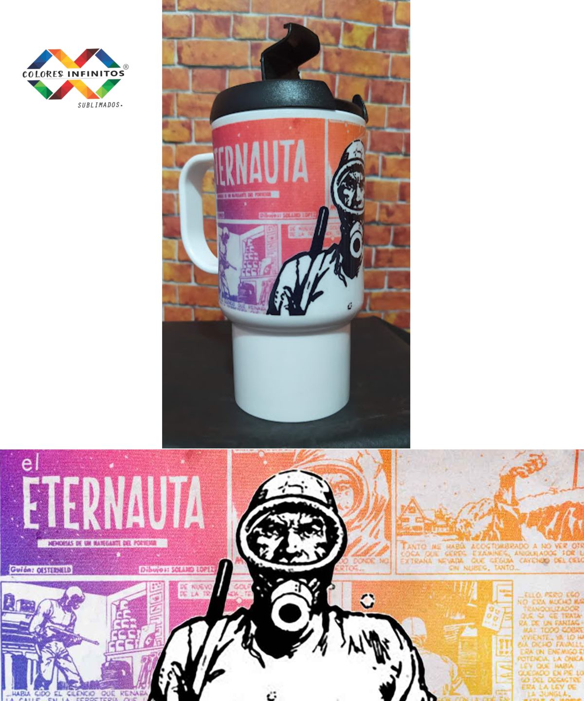 Jarro termico de polimero (plastico) de 500cc con diseño sublimado apto para microondas
