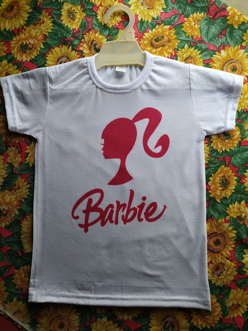Remera de poliester niños color blanca Talle 10 con diseño sublimado de silueta barbie