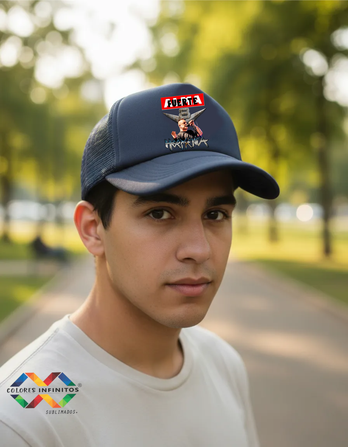 Gorra Truckers adultos color negra con pleno blanco con diseño de RICARDO IORIO estampado en impresion DTF