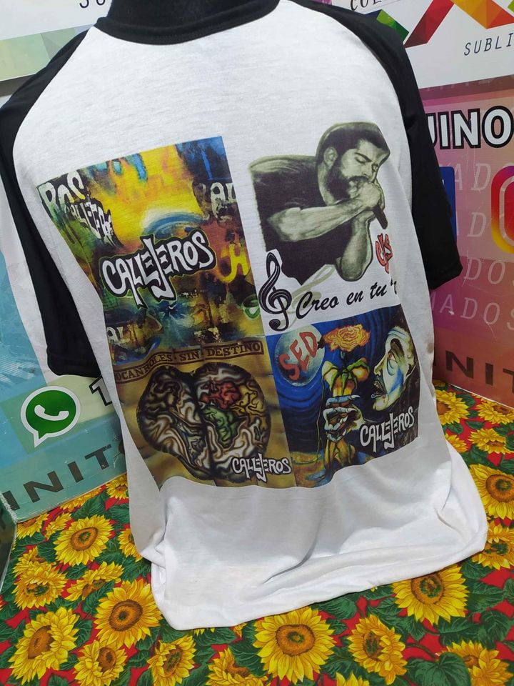 Remera de poliester raglan color blanca y mangas color negras Talle xl ,con diseño sublimado de CALLEJEROS