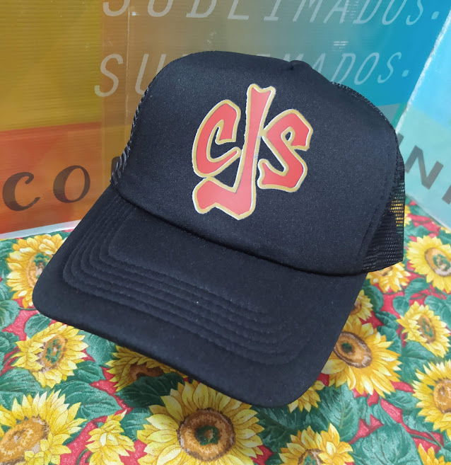 Gorra truckers color negra con pleno negro yadulto con diseño estampado en impresion DTF de CALLEJEROS