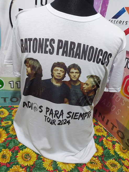 Remera poliester color blanca Talle xl ,medidas 54cm de ancho , 74cm de largo con diseño sublimado de RATONES PARANOICOS