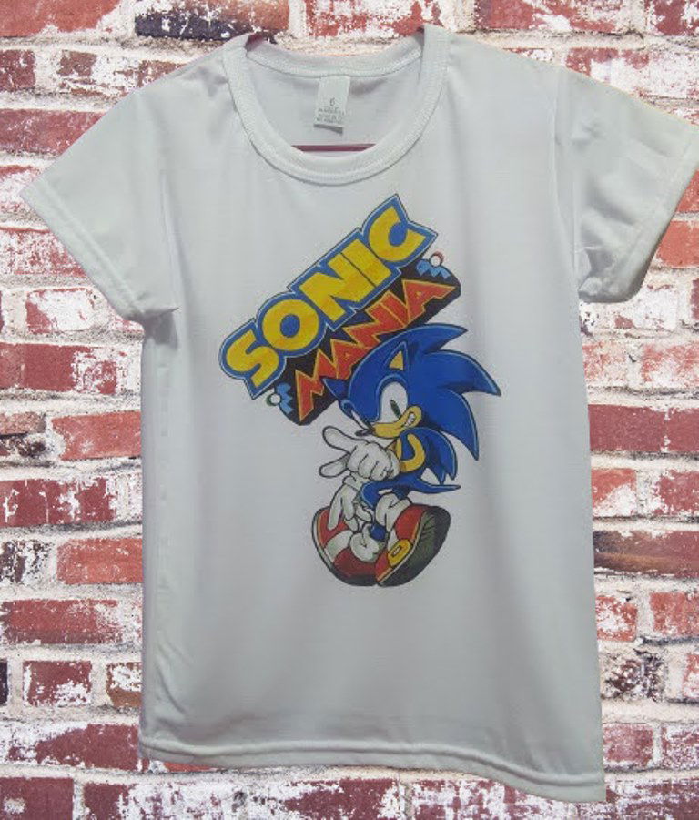 Remera de poliester Niños color blanca Talle 6 , medidas 33cm de ancho ,48cm de largo con diseño sublimado de SONIC