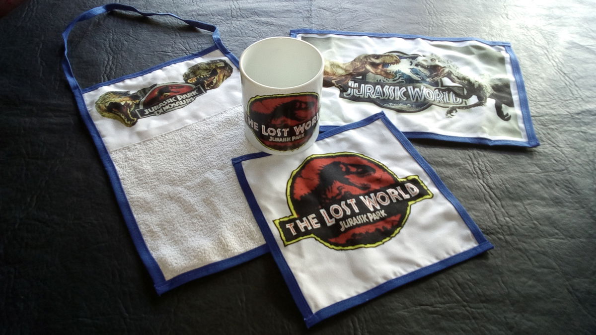 Set de jardin de infantes tiene los siguientes productos Servilleta,individual,toalla y taza de polimero (plastico) , todos estan sublimados con diseño de JURASIK PARK