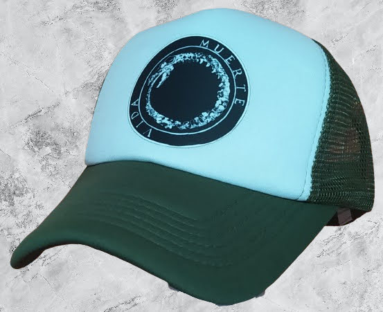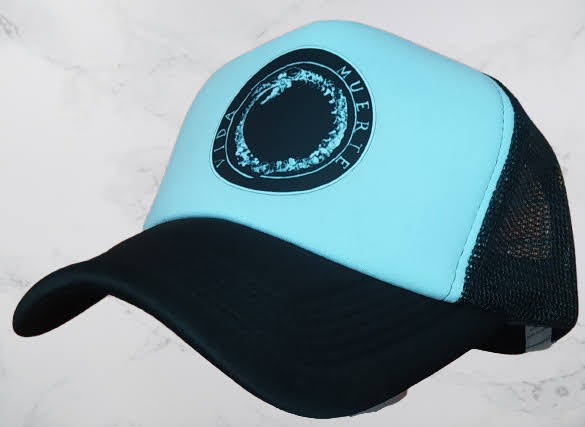 Gorra Truckers color negra con pleno Negro y diseño estampado en impresión DTF de CANSERBERO