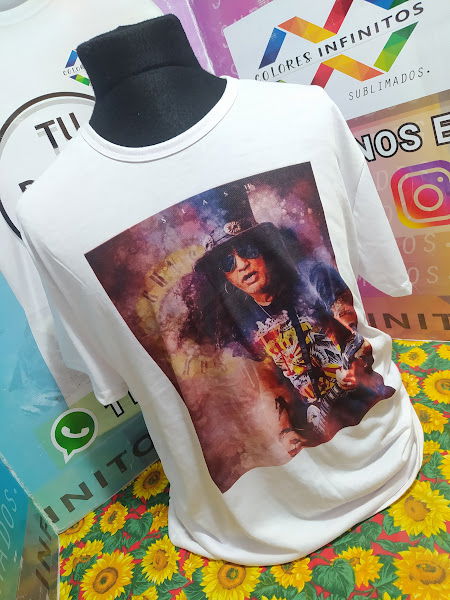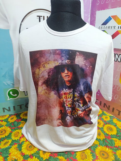 Remera de poliéster Talle XXL con diseño sublimado del guitarrista slash