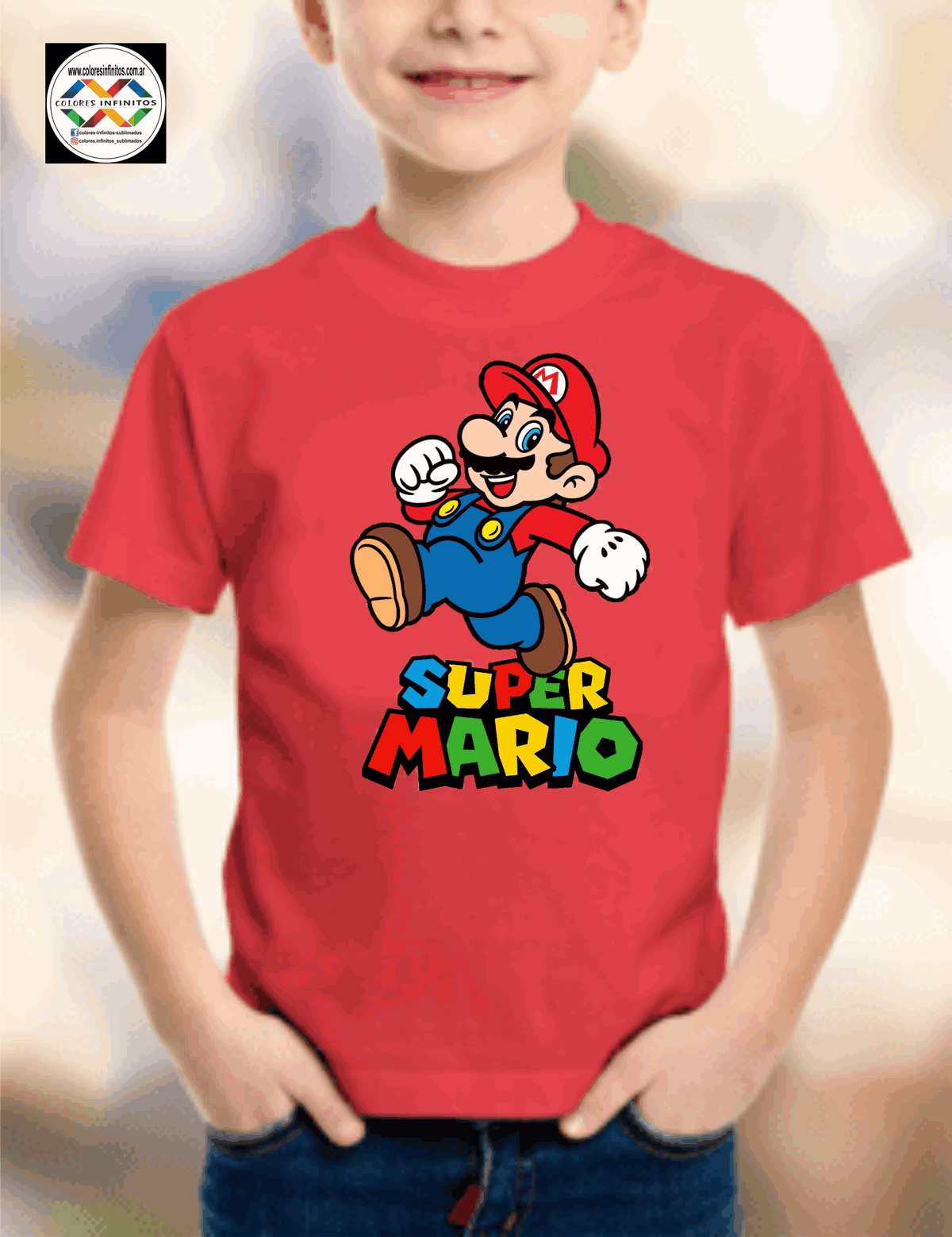 Remera de algodón peinado 24.1 niños Talle 10 , medidas 36cm de ancho , 55cm de largo con diseño estampado en impresión DTF de SUPER MARIO