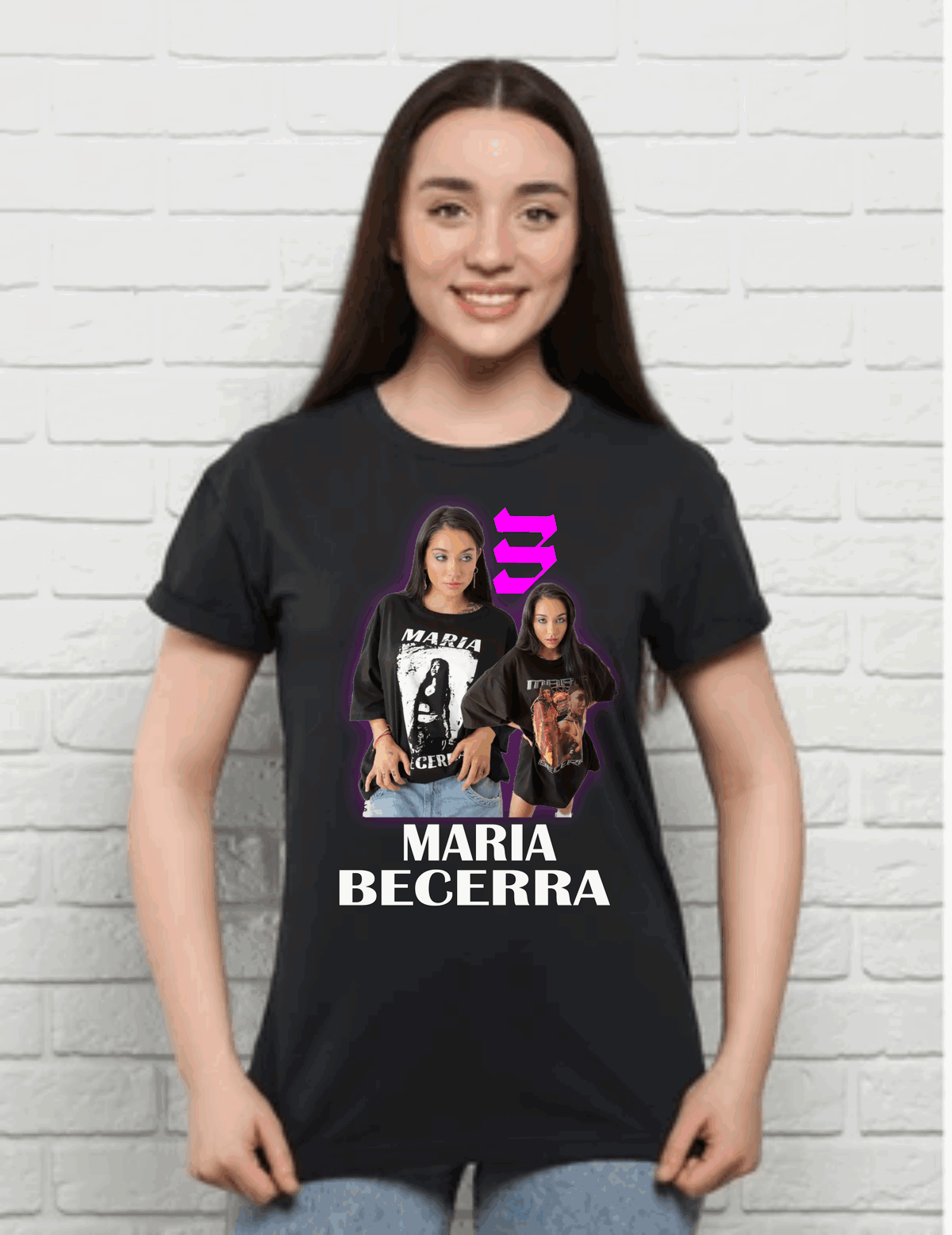 Remera de algodón peinado 24.1 Talle XL , medidas 52cm de ancho , 73cm de largo con diseño de María BECERRA estampado en impresión DTF
