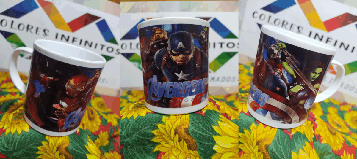 Taza de polimero (plastico) recta con diseño de Avengers sublimado