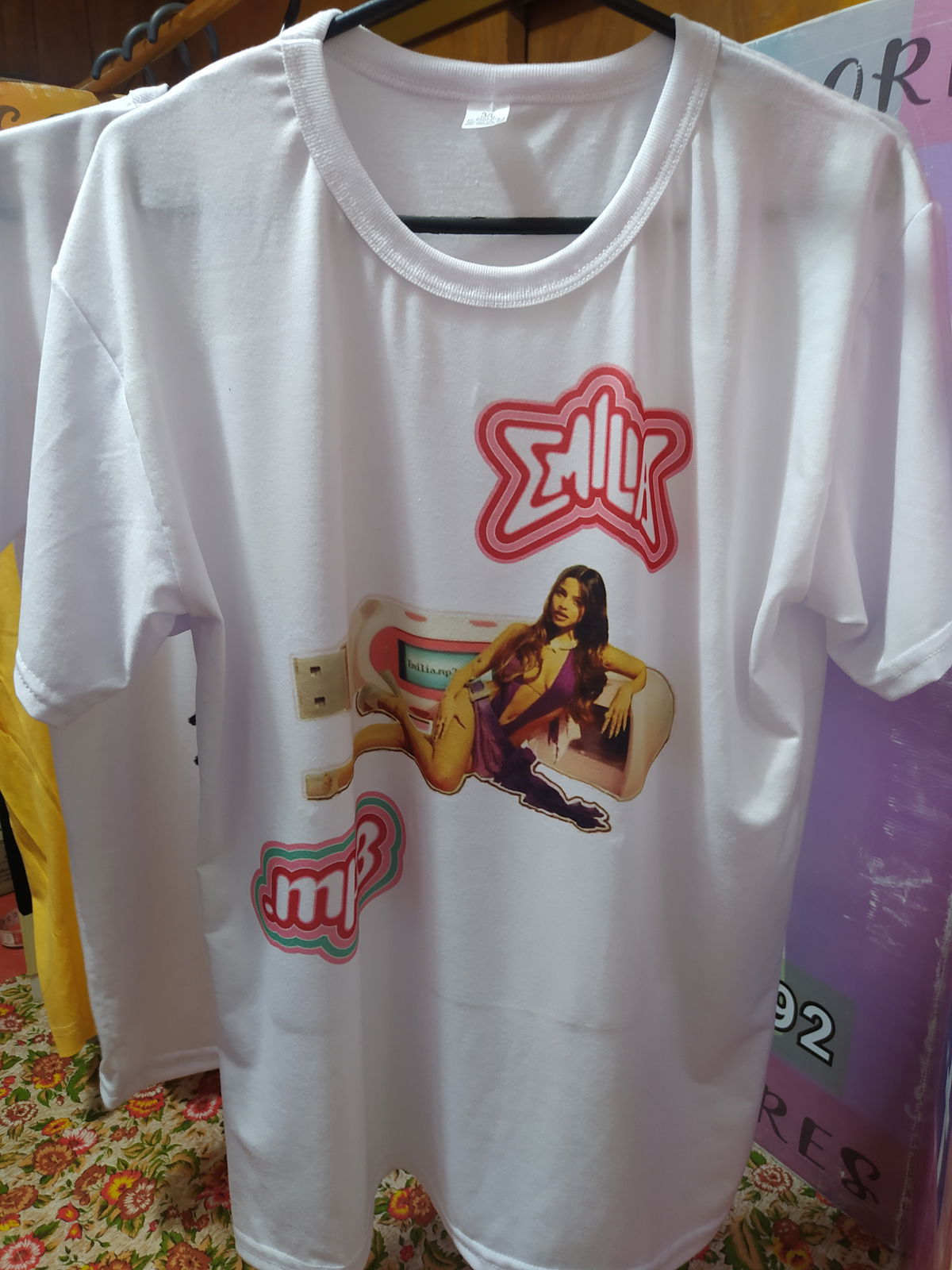 Remera de poliéster adultos Talle L , medidas 48cm ancho , 66cm de largo con diseño sublimado