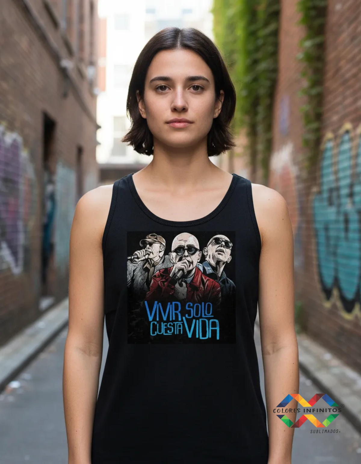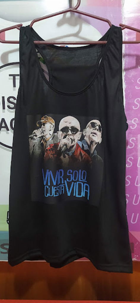 Musculosa de poliester color negra Talle L con diseño estampado en impresion DTF